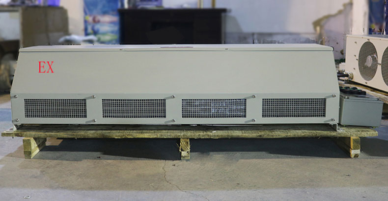 4、防爆熱風(fēng)幕由離心風(fēng)機(jī)、上風(fēng)斗、下風(fēng)斗、換熱器等部件組成。分熱水型、蒸汽型、冷熱水型三種;分明裝、暗裝二大類。